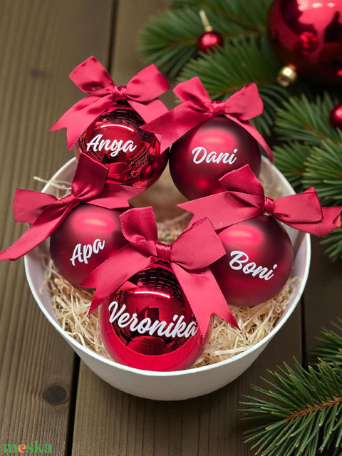 Piros 8cm üveggömb névvel feliratozva