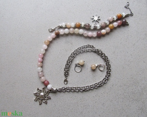 Kvarc ékszerszett – pasztell ásvány nyaklánc, karkötő és fülbevaló napmedállal