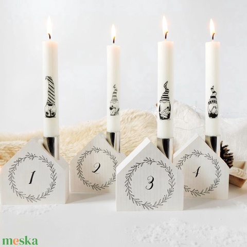 Házikó Adventi gyertyatartó szett - manós