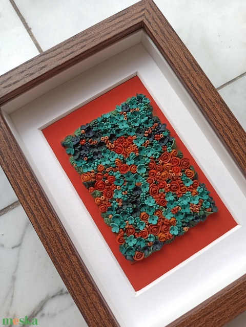 Türkiz-narancs virágtenger - 3D gyurma kép (S)