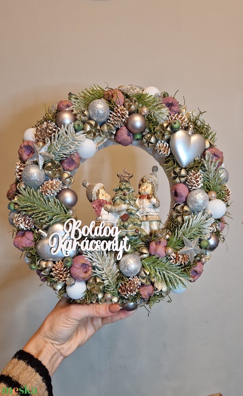 - Anyaga: koszorú alapot, dekorációk, szalag, termések, bogyósok, díszek