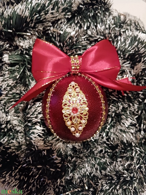 Piros-arany,diszitett gömb