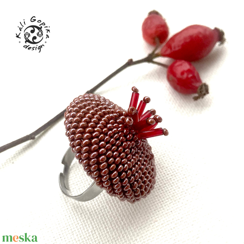 Barna giga méretű gyöngyös design gyűrű