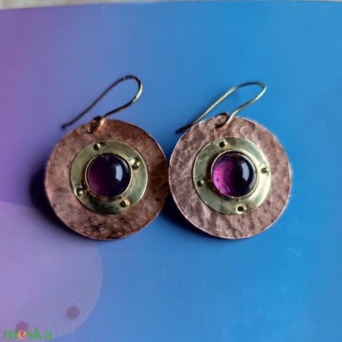 Korong alakú fülbevaló ametiszt kővel