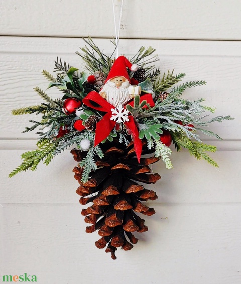 Karácsonyi dísz, óriási toboz függelék, mikulás manó