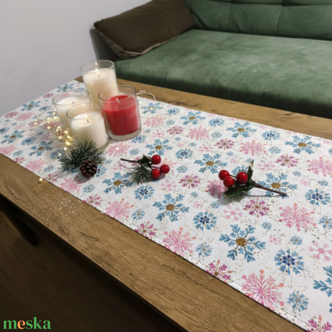 Hópehelyhes, karácsonyi asztali futó, futó terítő
