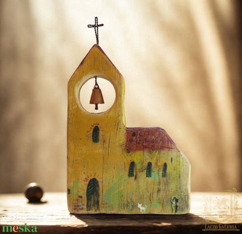 Templom fehér cicával - Egyedi dekoráció, ajándék ötlet, Gyerekszoba, Karácsony, Kiscica, Harang