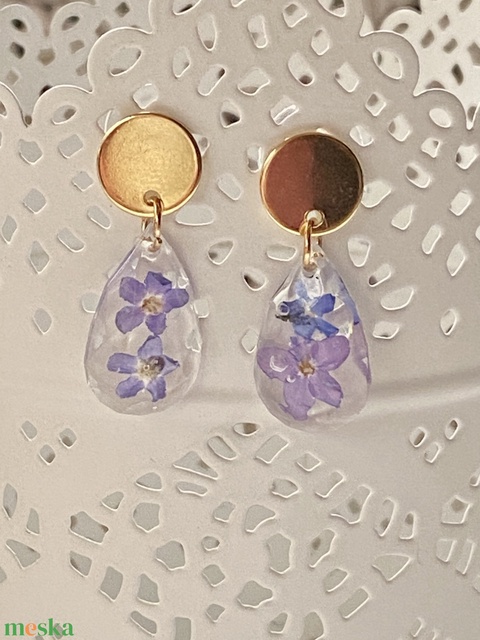 Nefelejcses kör és csepp forma,epoxi gyanta fülbevaló