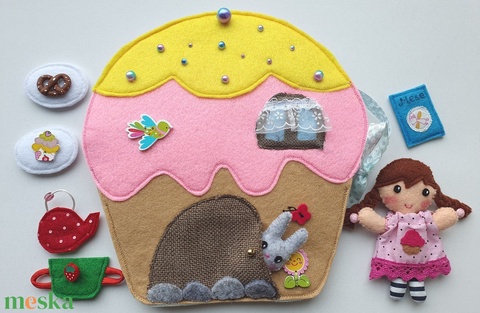 Borka baba muffin házikója- játszókönyvecske öltötztetős babával és kisnyuszival - AZONNAL VIHETŐ!