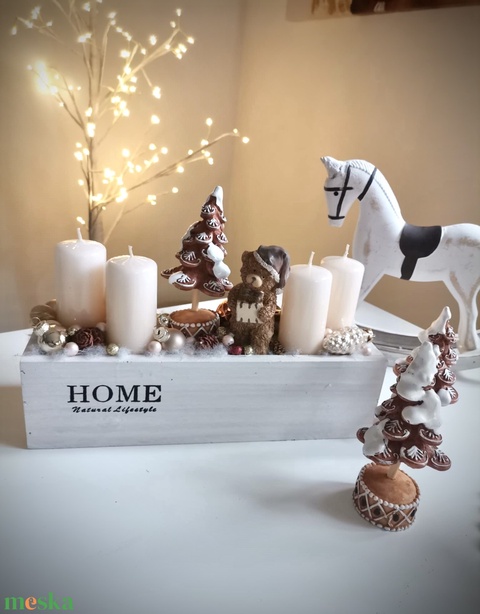 Mackó adventi tál, karácsonyi adventi koszorú dísz