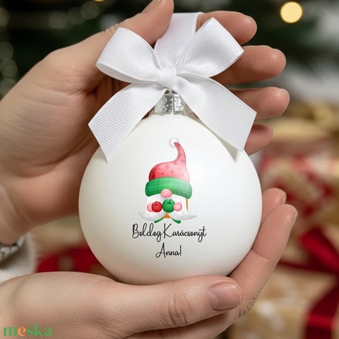 Karácsonyi üveg díszgömb egyedi névvel - Manós - 100039