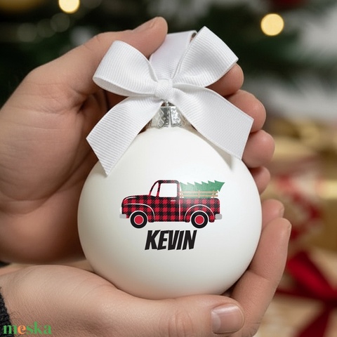 Karácsonyi üveg díszgömb egyedi névvel - Autós 2 - 100044