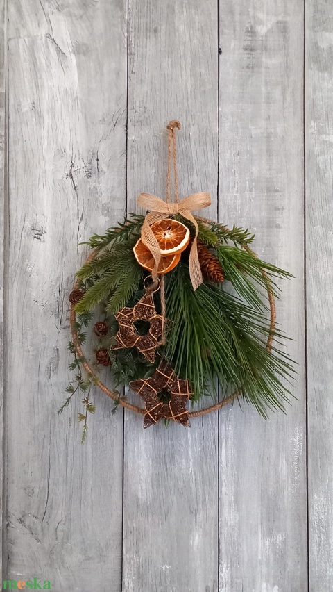 - Anyaga: szalag, műzöldek, termések, karikaalap