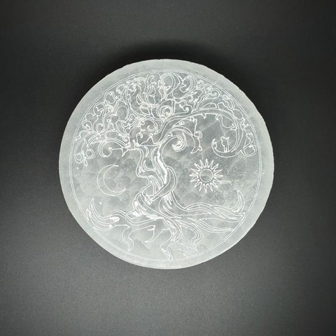 Szelenit korong Életfa Nap és Hold mintával 18 cm