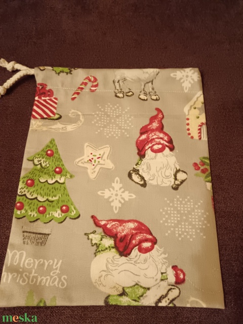 Mikulás zsák : 28x22cm, erős pamut vászon . Tetején összehúzható. Akár ünnepi csomagolás is.