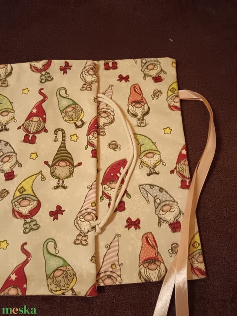 Mikulás zsák :30x20 cm, összehúzó szalaggal, pamut vászon anyagból.