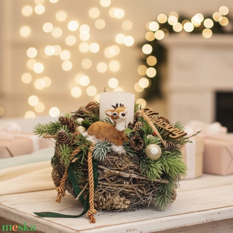 Kis őzikés karácsonyi dekor – rusztikus gyertyával