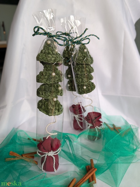 Horgolt karácsonyi fenyők (asztali dekoráció)