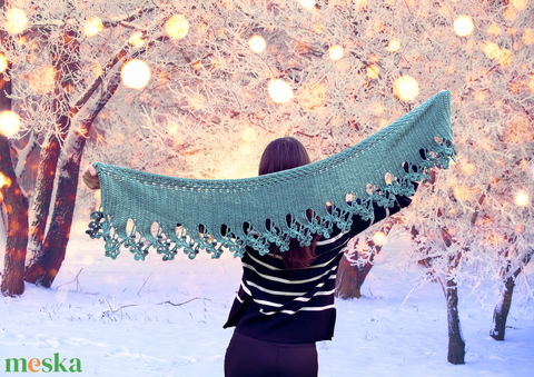 Kézzel horgolt pamut sál – boho stílusú, puha zsályazöld kiegészítő