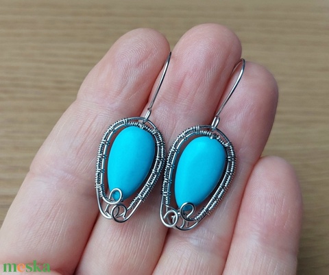 Acél drót fülbevaló türkiz ásvány kövekkel