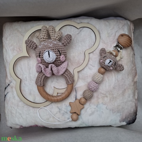 Őzikés babalátogató ajándékcsomag mérföldkőtakaróval