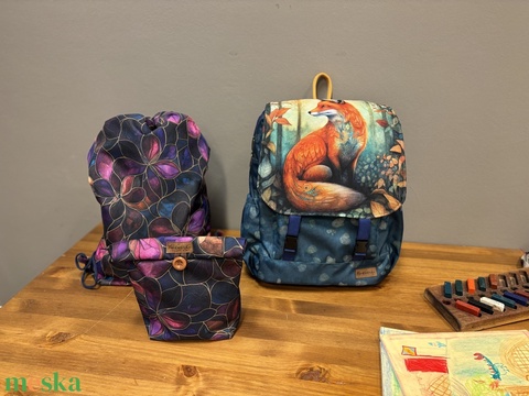 - Anyaga: pamutheveder, vízhatlan anyag, fliz, cipzár, pul