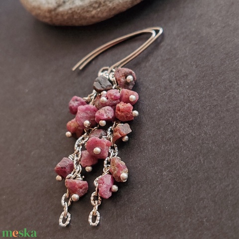 - Anyaga: nemesacél fülbevaló alap, ezüstözött lánc, nyers rubin rög