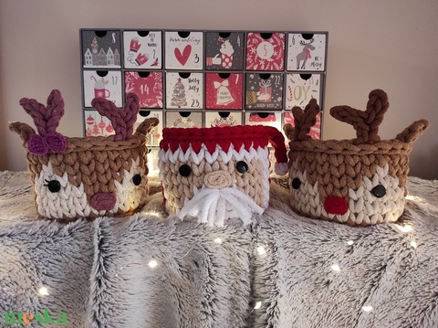 Mikulás, Rudolf vagy rénszarvas lány horgolt tároló