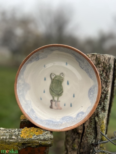Kézzel festett kerámia tál – “Béka” 15 cm
