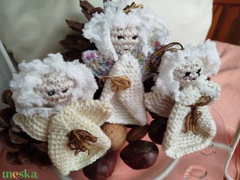 Horgolt karácsonyi angyalkák, diszdobozban