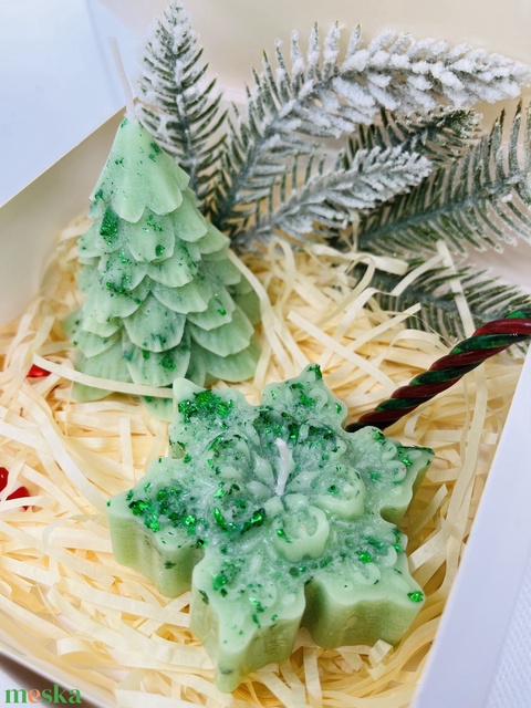 Zöld Karácsonyi Gyertyaszett – Fenyőfa és Hópehely
