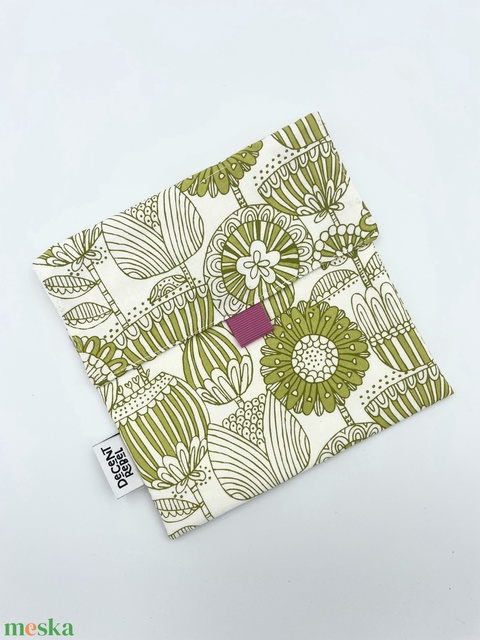 Uzsonnás tasak - fehér-zöld nagy virág mintás/magenta