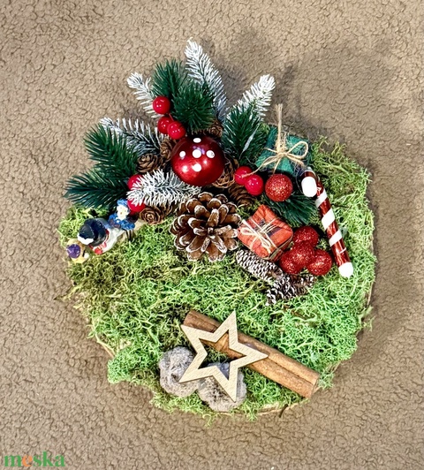 Karácsonyi asztaldísz tobozzal