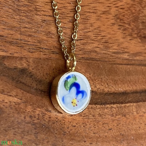 Aranyozott pici medál - Herendi mentett darabok - nefelejcs medál vagy nyaklánc