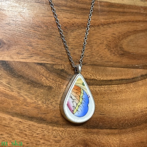 Herendi mentett darabok - porcelán nyaklánc - csepp medál nemesacél lánccal, pillangós