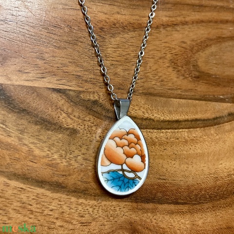 Herendi mentett darabok - virágos porcelán nyaklánc - nemesacél csepp medálos nyaklánc
