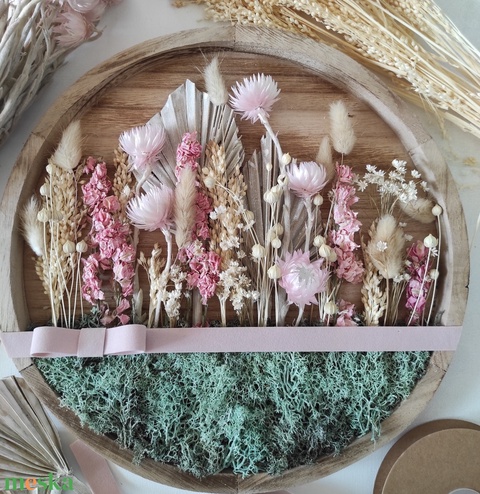 - Anyaga: fatálca, szárazvirág, tűzőhab, zuzmó, szalag
