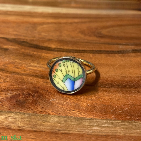 Aranyozott gyűrű - Herendi mentett darabok - pillangószárny mintás, állítható
