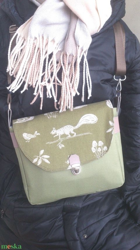 Cross body - olívazöld / oldaltáska, testtáska - bőr kiegészitőkkel - ajándék - Heva táska - karácsony