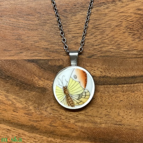 Herendi mentett darabok - nemesacél nyaklánc lepkés porcelánnal
