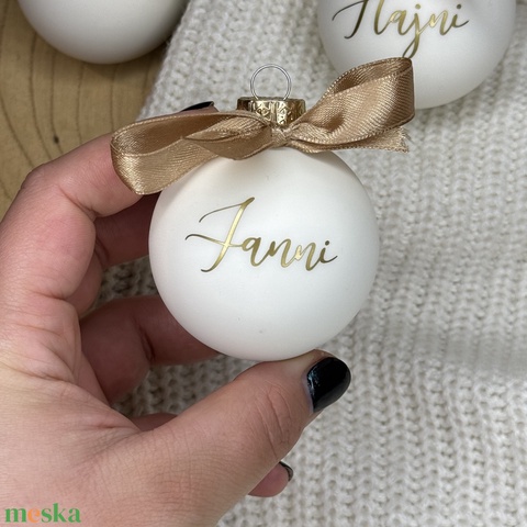 LIMITÁLT 'arany felíratos' Egyedi névreszóló karácsonyfadísz - hófehér