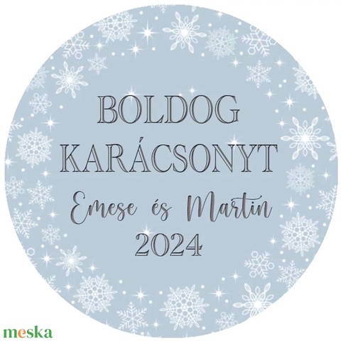 Karácsonyi matrica - Egyedi szöveggel ellátott személyre szabott- hópelyhes kék (Egyedi karácsonyi ajándékok)