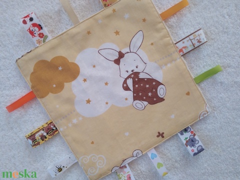 Nyuszis baba készség fejlesztő címkekendő, alvópárna