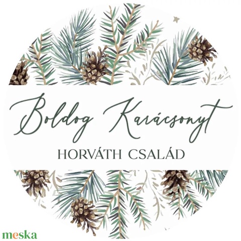 Karácsonyi matrica - Egyedi szöveggel ellátott személyre szabott- fenyőág tobozzal (Egyedi karácsonyi ajándékok)