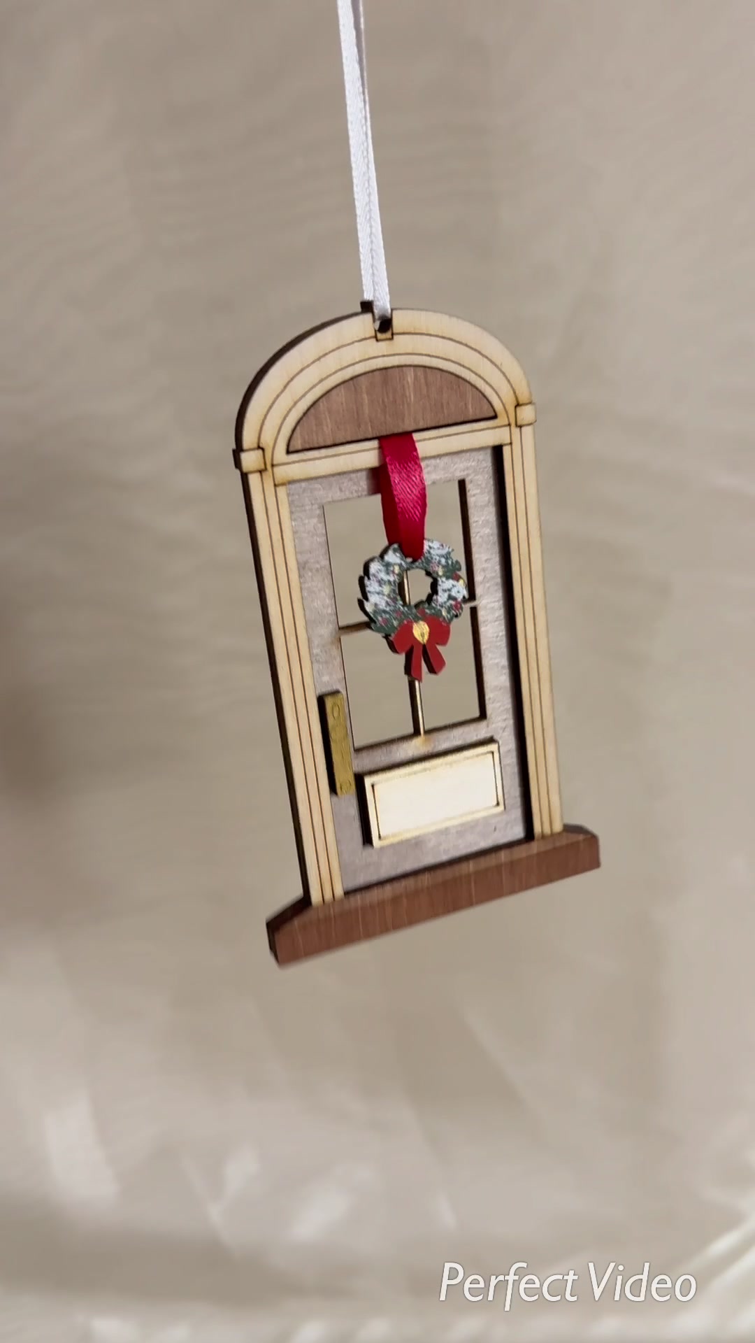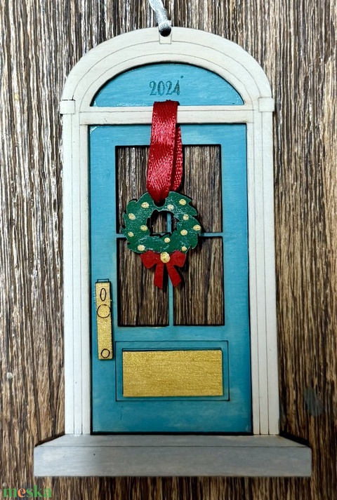 Ajtó adventi koszorúval több rétegű kézzel festett karácsonyfadísz fából