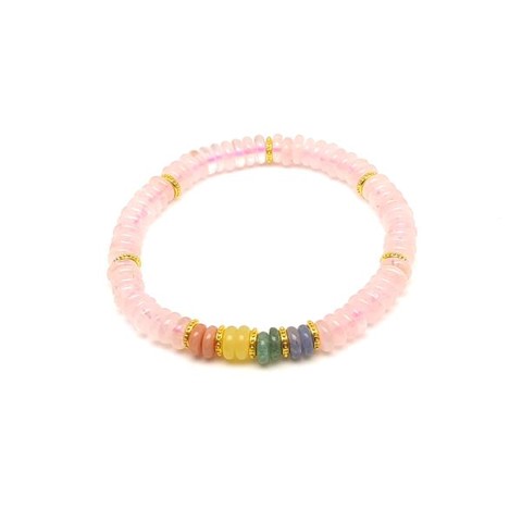 Rózsakvarc ásvány karkötő 5 korong köves díszítéssel 6×2 mm