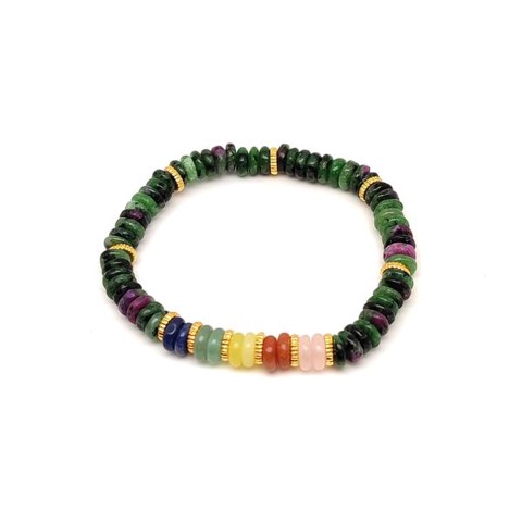 Rubin zoizit ásvány karkötő 5 korong köves díszítéssel 6×2 mm