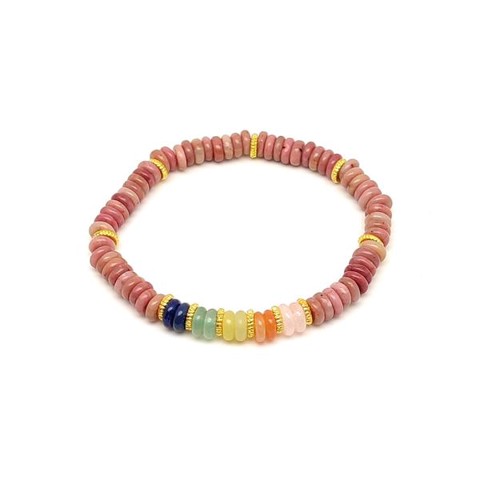 Thulit ásvány karkötő 5 korong köves díszítéssel 6×2 mm