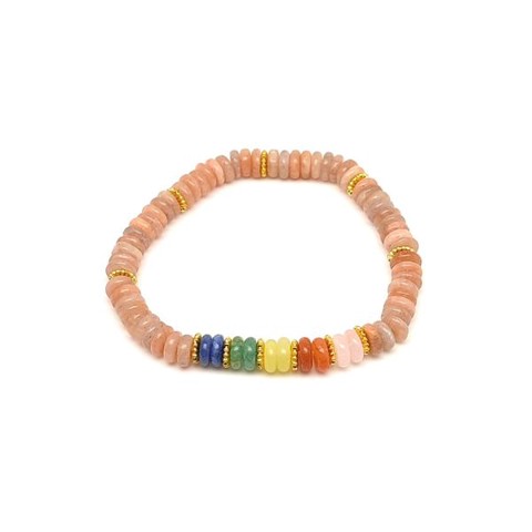 Holdkő barack árnyalatú ásvány karkötő 5 korong köves díszítéssel 6×2 mm