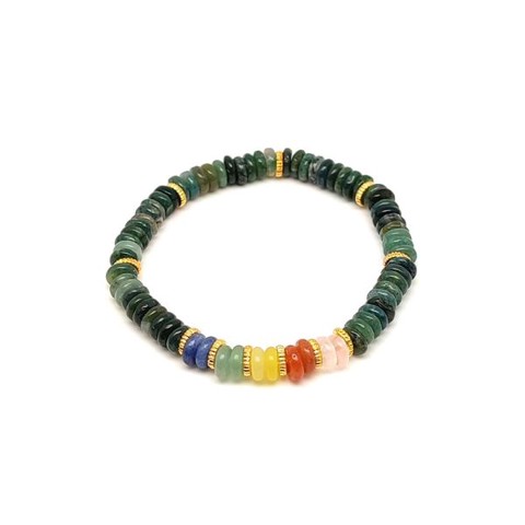 Achát moha ásvány karkötő 5 korong köves díszítéssel 6×2 mm